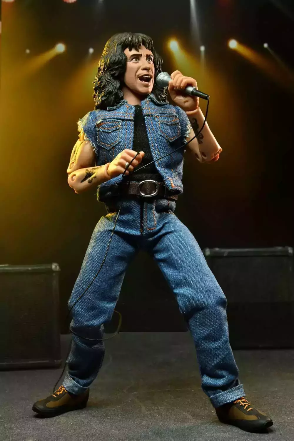 Esta figura de acción totalmente articulada y extremadamente tatuada se basa en la aparición de Bon Scott en el video musical “Highway to Hell” de AC/DC y mide 8 pulgadas de alto. Viene con micrófono y cabezal alternativo. Embalaje de caja de ventana.